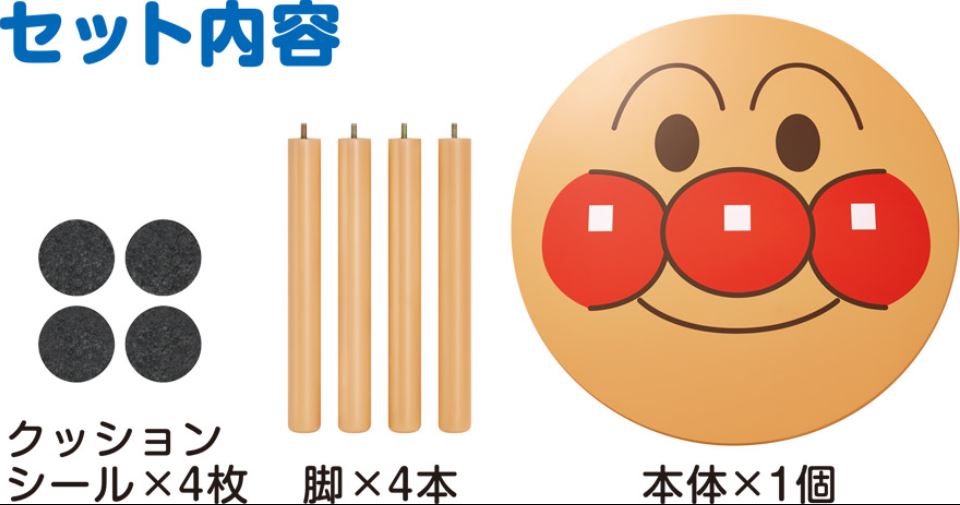 組み立てカンタン! アンパンマンの顔がそのままテーブルになりました! 対象年齢:1.5才以上 サイズ:w560×h320×d560mm ※本品は、御注文を頂いてから発注・手配をしますので、在庫の無い場合は、お待ち頂くかキャンセル処理をさせて頂くようになります。